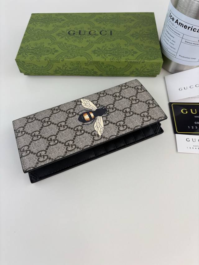 Guccl 新款男士西装夹!专柜同步,黑色皮革,搭配Pvc面料 丝印最新蜜蜂标志 油边做工精细 ,简单大方,时尚霸气, 款号: 451275 尺寸: 18Cm X 9Cm X 2Cm 颜色: 印蜜蜂 啡色