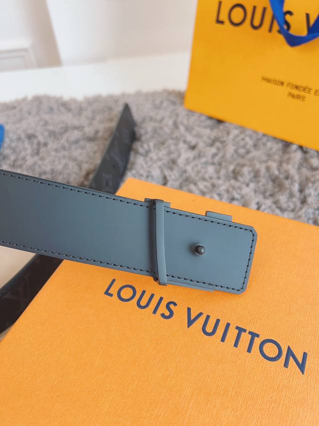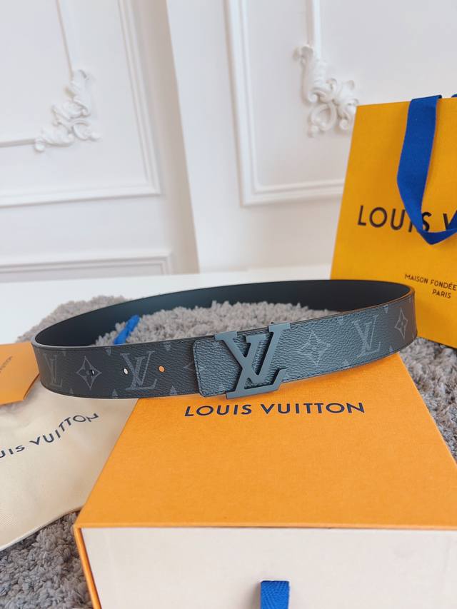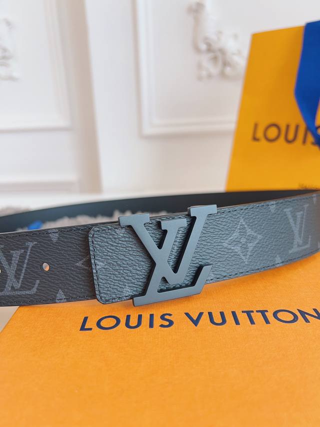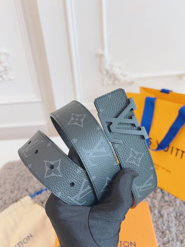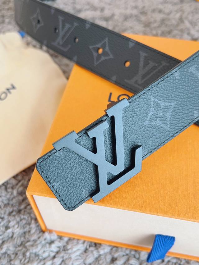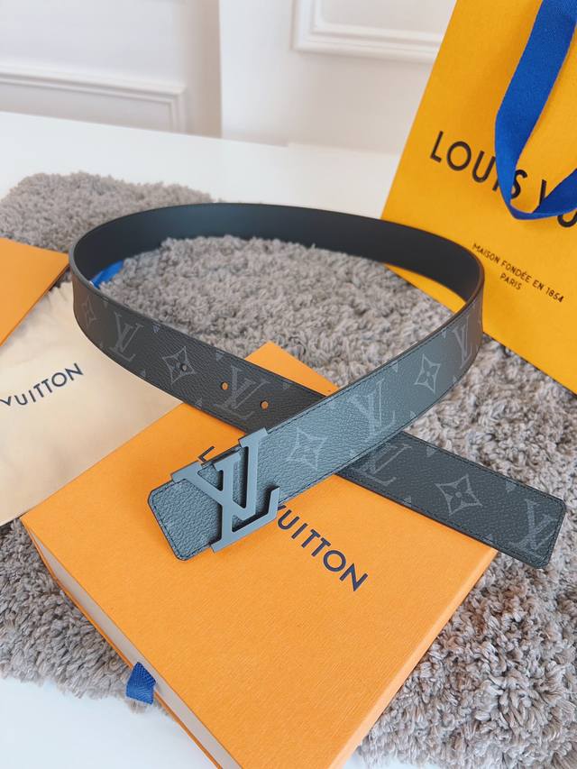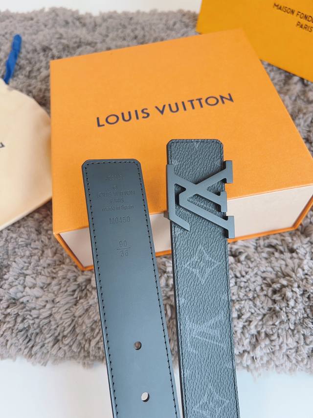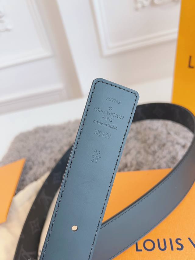 Lv3.5Cm宽度m0450 双面可用 烤漆黑经典字母搭扣 采用细腻进口原厂小牛皮 一面黑色老花标志性图案
