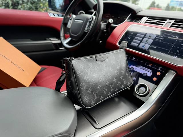 高端货 新款 “ Louis Vuitton”Lv单肩包 路易威登斜挎包 M11741。Louis Vuitton Pochette Accessories 字母徽标可拆卸肩带 皮革饰边 单肩斜挎包 常规 男款 黑色。细节精致到每个细节 专用内里。潮男必备。尺寸:29X17X9Cm 配:折叠礼盒