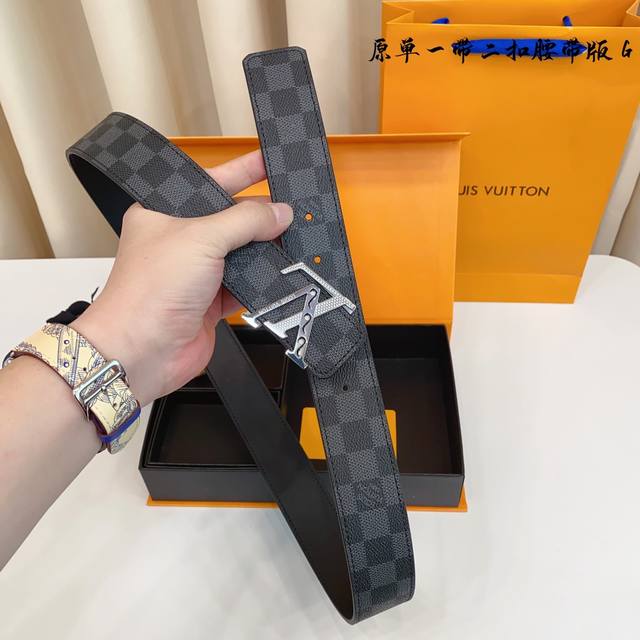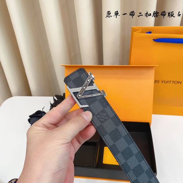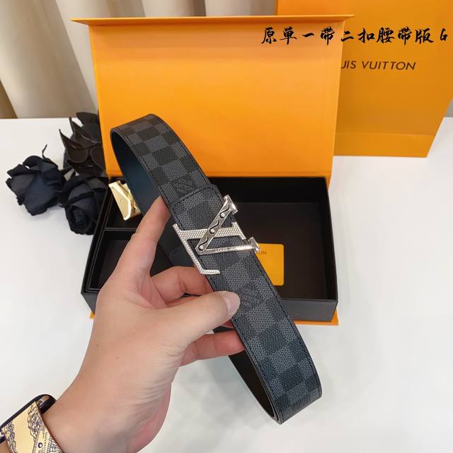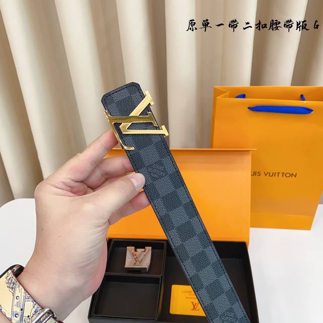 ①带①扣 ①带②扣 原单钢扣版路易l家 打孔内穿 正版开模 此款腰带双面采用原厂牛皮带身,精密电镀标志性纯钢搭扣 对版专柜。3.8Cm 如需木盒40
