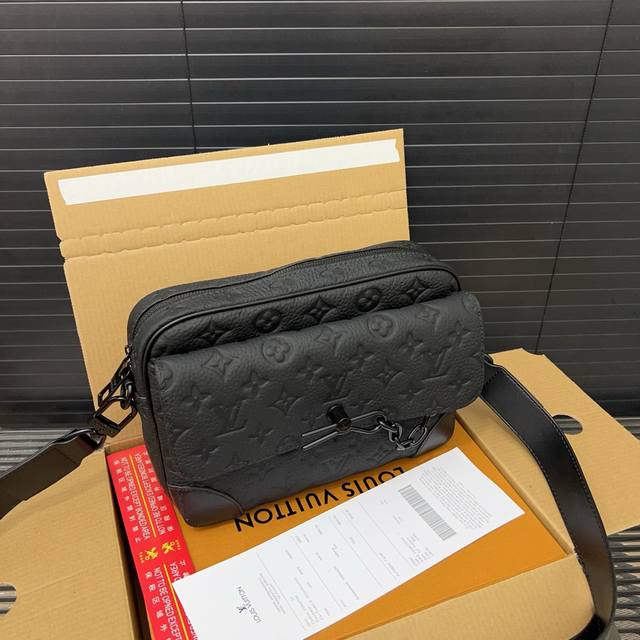 / Louisvuitton 路易威登 头层牛皮压花链条单肩包 Steamer邮差包 斜挎包 男女同款 实物拍摄 原厂原版面料 配送礼盒 24 X 17Cm。
