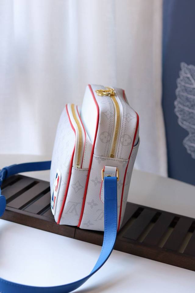 / 路易威 顶级原单 独家实拍 邮差包 M45583白花 Xnba Nil 邮差包出自路易威登与 Nba 联名系列 Nba 标识皮革贴饰点Monogram 帆布包身