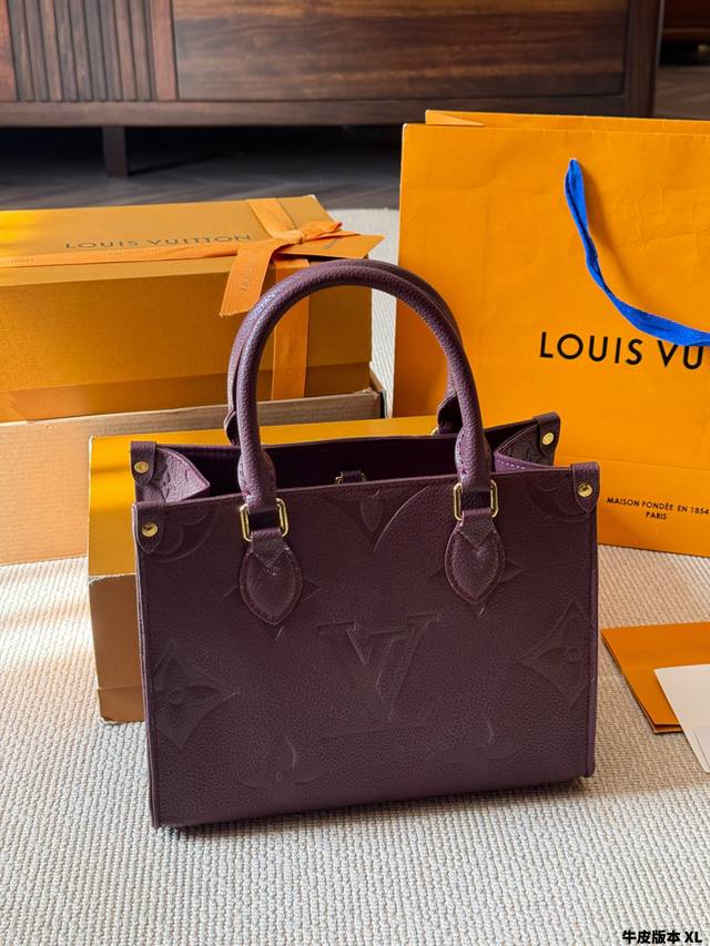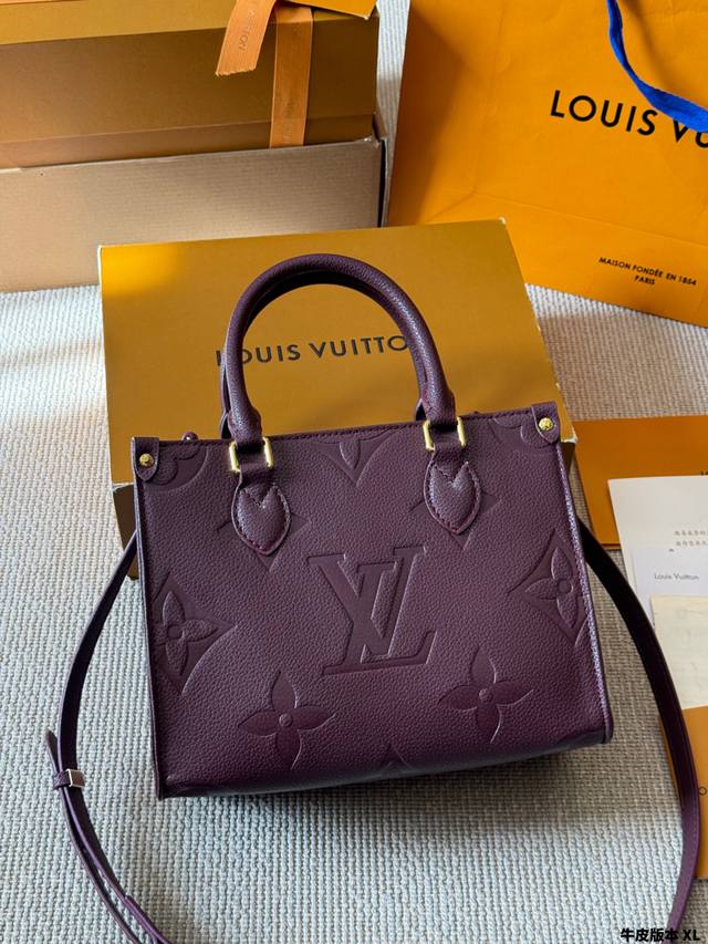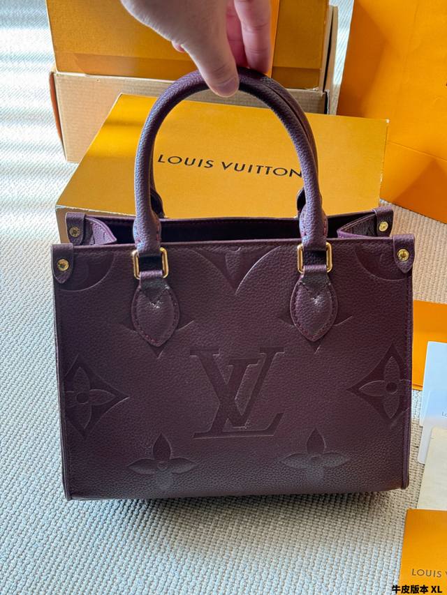 牛皮版本 Lv Onthego 新款丛林包 Onthego绝对是通勤工具包必备单品之一轻盈容量大百搭最最关键不娇气小号的尺寸刚刚好也不像老花的容易撞款 尺寸小号25Cm 全套礼盒包装