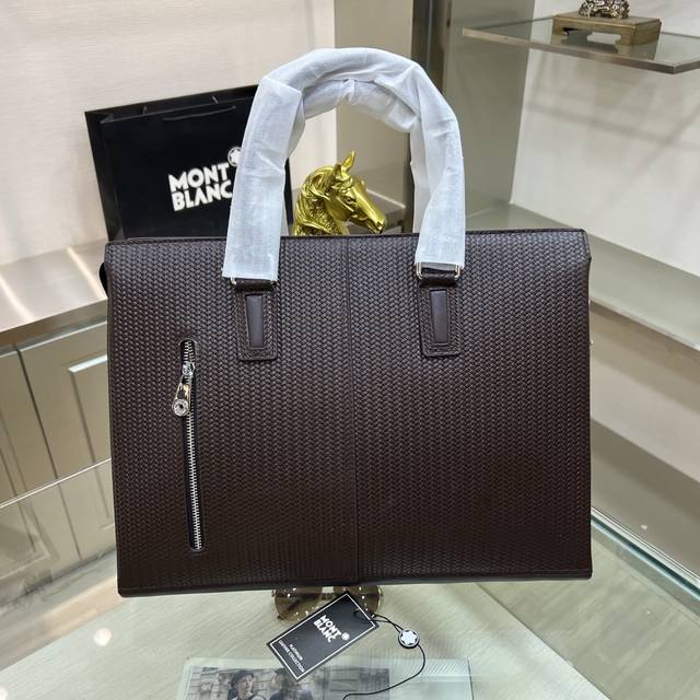 Montblanc 万宝龙 手提包男包 男士公文包电脑包 采用精湛镶嵌细工 经典百搭 实物拍摄 原厂原版面料 高端品质 配送防尘袋 28 X 38...