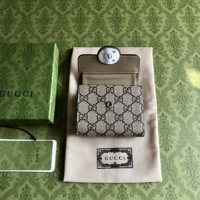 顶配版 经典双G元素以迷你尺寸呈现于迷你Gg系列各式全新皮具之上,为该知名标识注入一抹含蓄内敛的气韵。优雅迷人的钯金效果标识与纯色皮革及Gg Supreme帆布巧妙融为一体。品牌标识为这款黑色和乌黑色Gg Supreme帆布中号钱包汇入别样风采。黑色和乌木色Gg Supreme帆布,钯金色调配件,云纹织物衬里双G,内部:四个卡片隔层、一个拉链袋和一个钞票隔层,按扣开合。