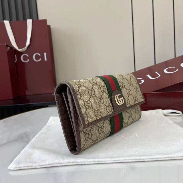 顶配版 新品 Ophidia系列亮眼呈献新颖廓形与实用功能性设计,以标志性米色和棕色配色匠心演绎,缔就质地柔软的配饰单品,这款长款钱包便是其中一款代表作。