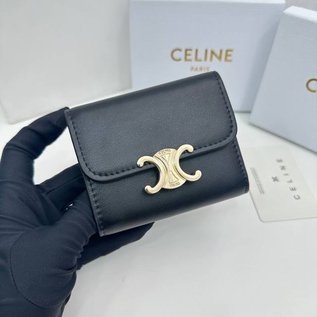 Celine 66889颜色 黑色 尺寸 11*10*5 Celine短式钱包非常炫美的一个系列,专柜同步,采用头层牛皮,精致时尚!