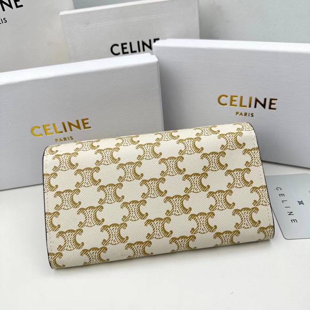 Celine 颜色 老花尺寸:14*11*2 Celine专柜同步,采用进口小牛皮,金色饰面,Triomphe...