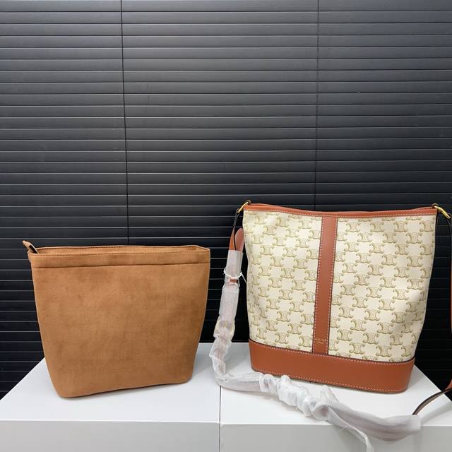 / Celine 赛琳 大号 Triomphe 凯旋门老花满印 子母水桶包 单肩斜挎包 实物拍摄 配送防尘袋折叠礼盒 24 X 28Cm