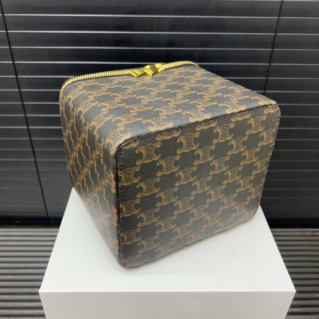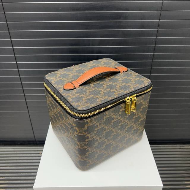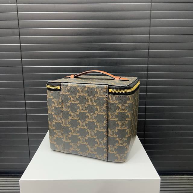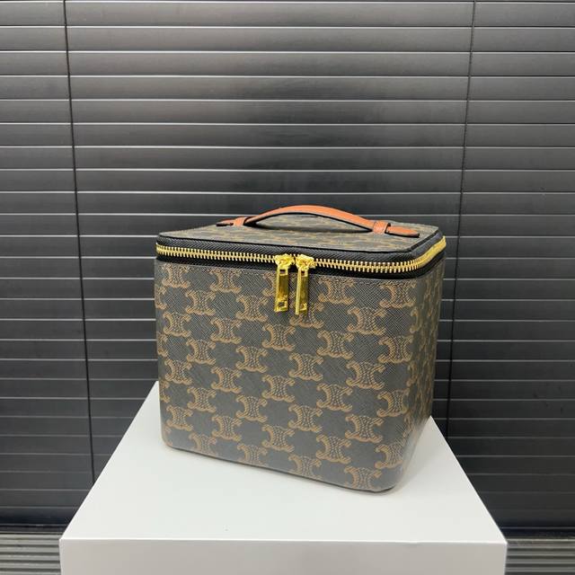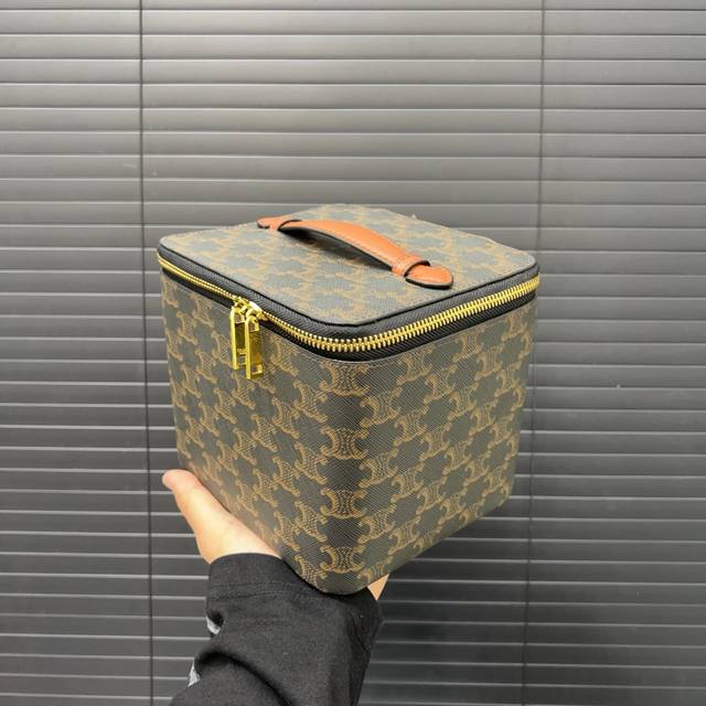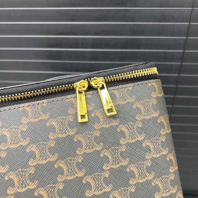 / Celine 赛琳 Triomphe 凯旋门老花满印 拉链 化妆包手提包 手拿包 实物拍摄 配送防尘袋折叠礼盒 15 X 18Cm
