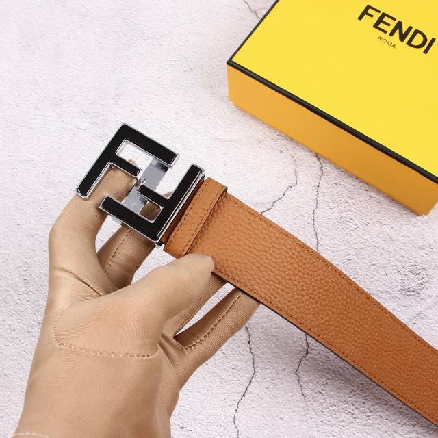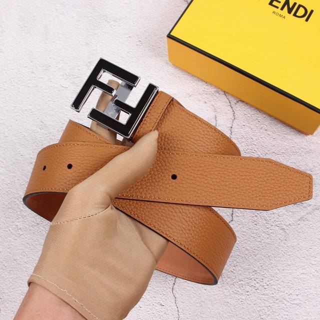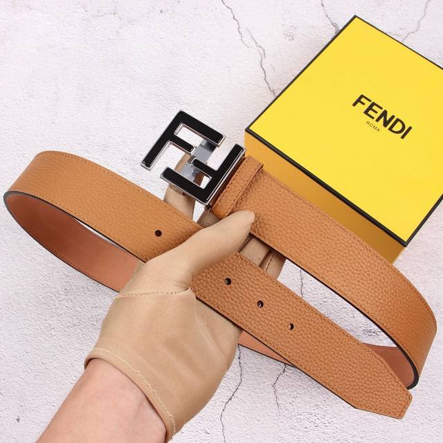 / Fendi 芬迪 专柜同款 宽40Mm 男士时尚休闲腰带 原版荔枝纹面+头层磨砂底 顶级做工,搭配标志ff搭扣,奢华时尚休闲 原单品质。