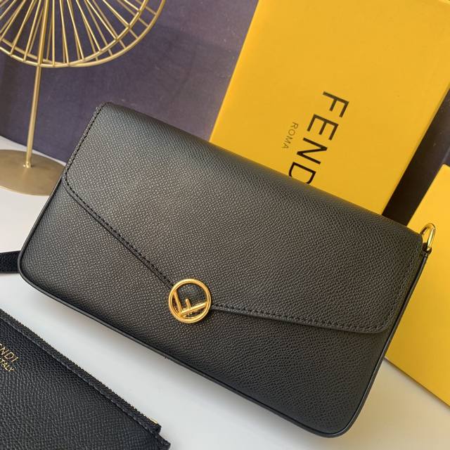 / 型号:F8Bs032 芬迪黑色。 尺寸21.5X13X3Cm介绍:几何图形翻盖迷你手袋,饰有Fendi微标,按扣开合,配两个可拆式内袋--一个带拉链,一个带8个