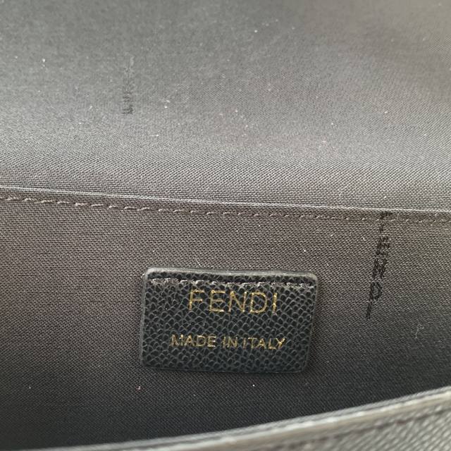 型号:F8Bs032 芬迪黑色。 尺寸21.5X13X3Cm介绍:几何图形翻盖迷你手袋,饰有Fendi微标,按扣开合,配两个可拆式内袋--一个带拉链,一个带8个