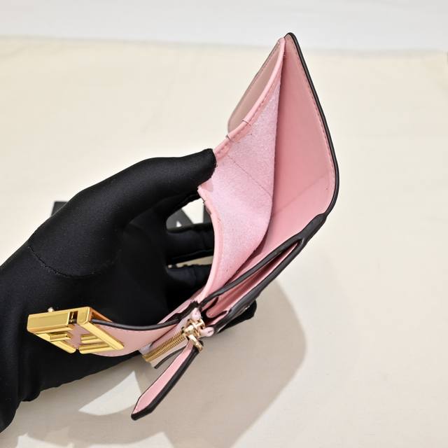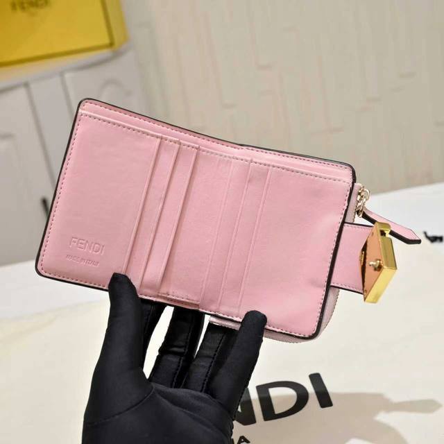 型号 33202 Fendi芬迪 Ff Diamonds系列 三折金色饰面金属件 小牛皮 钱夹钱包 中号 女款 棕色黑色灰色粉色黑配棕