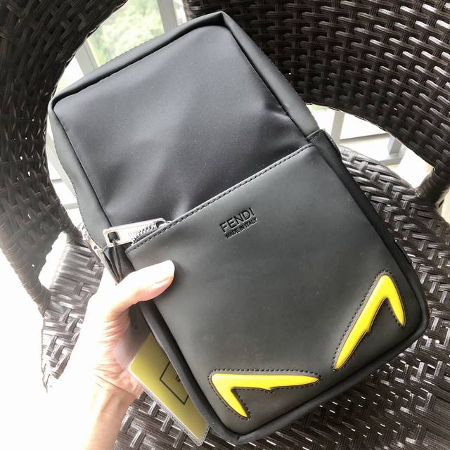 / 芬迪Fendi小怪兽长方形背包男士斜挎胸包,原版科技布料搭配进口磨砂皮牛皮,旅行体验极佳的包袋,设有两个隔层和实用的尼龙肩带,长度可调节且系扣于左边或右边皆宜。