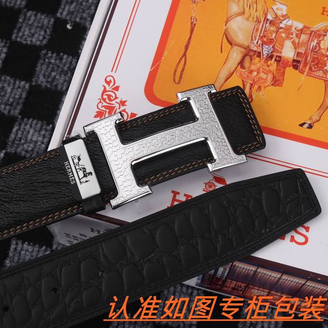 自动无孔腰带 Hermes爱马仕35Mm精致h自动扣,头层牛皮腰带,完美佩饰!
