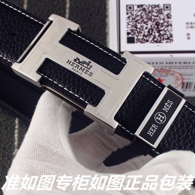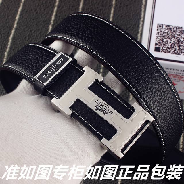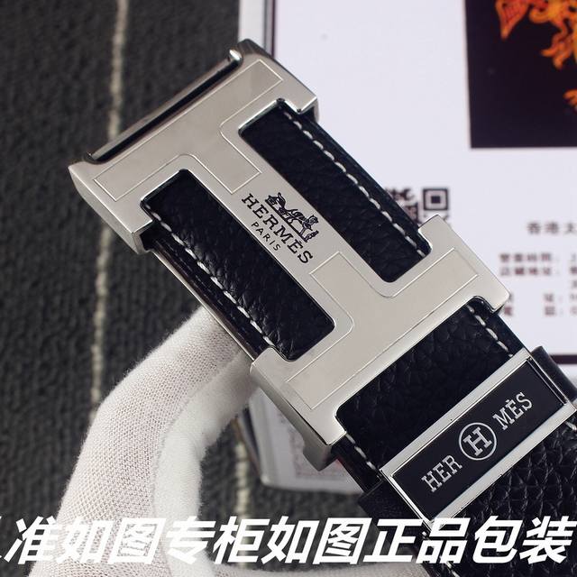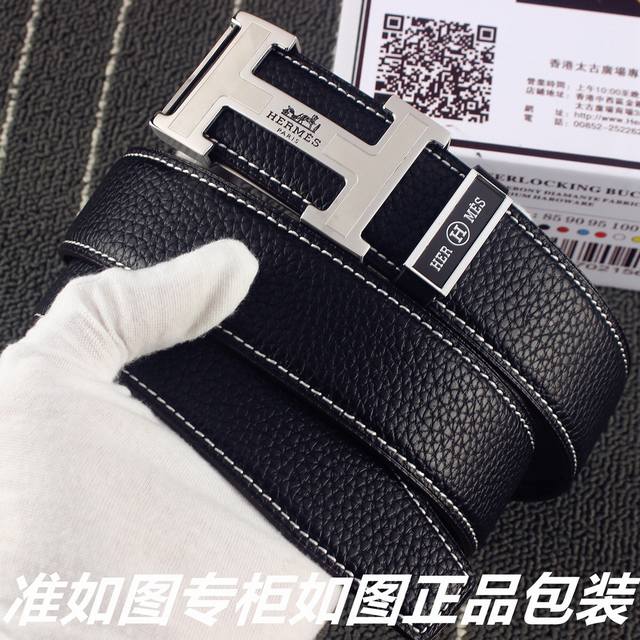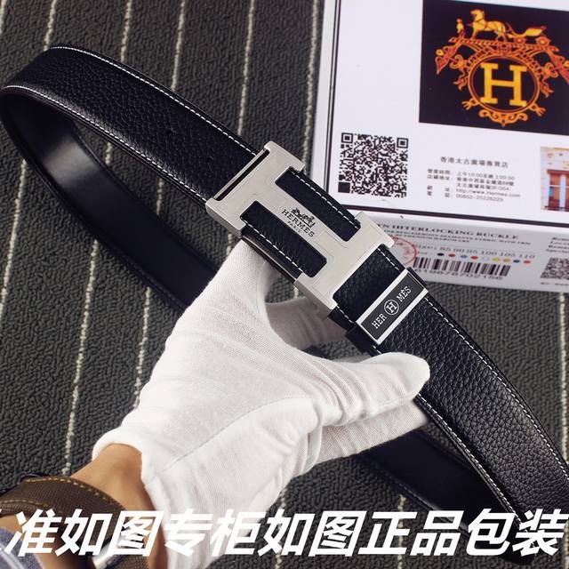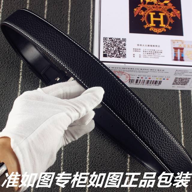 原版品质打孔 品牌:爱马H家 男款 颜色:黑 扣头:金 银 扣头:原版精品纯铜五金扣头 带身:原版牛皮 尺寸:宽约:3.8Cm...