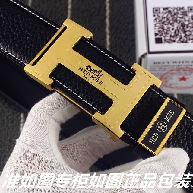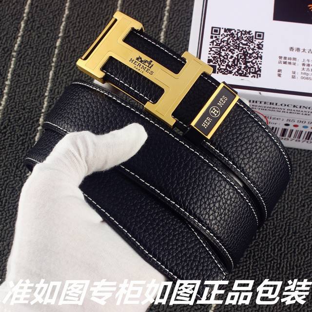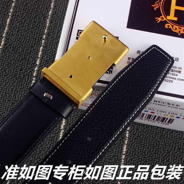爱马仕宽3.8Cm进口原版Togo皮腰带 扣头金属工艺,经手工打磨而成。扣头可随意选择搭配皮。双面使用,高端商务休闲款 专柜包装