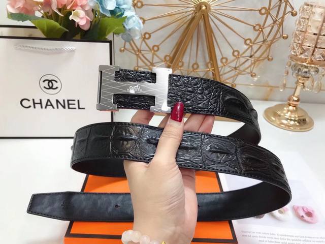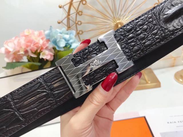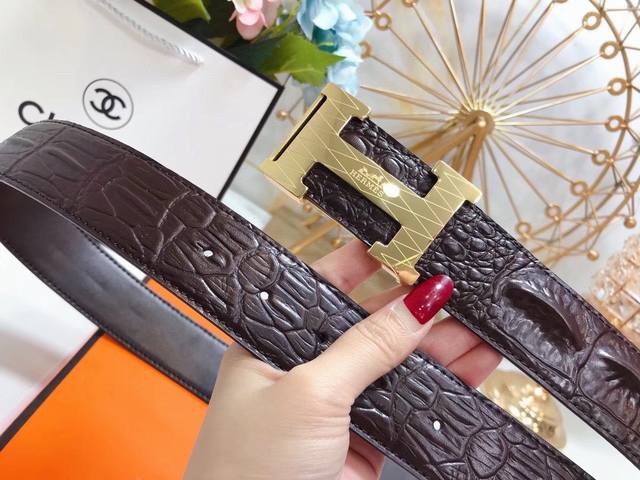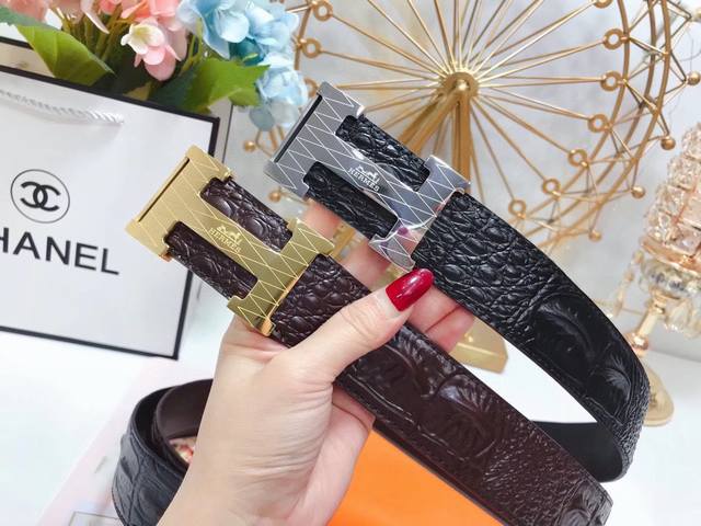 爱马仕 Hermes 3.8 Cm 双面原版皮 车双黄线小鳄鱼纹 爱玛仕专用钢扣 带身采用爱马仕专柜最新元素 双色原版款式 大气有光泽度...