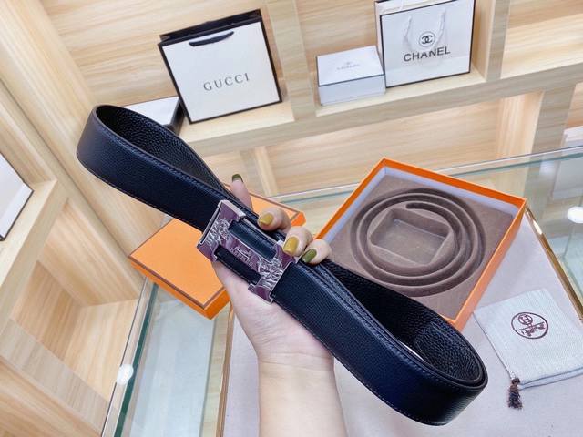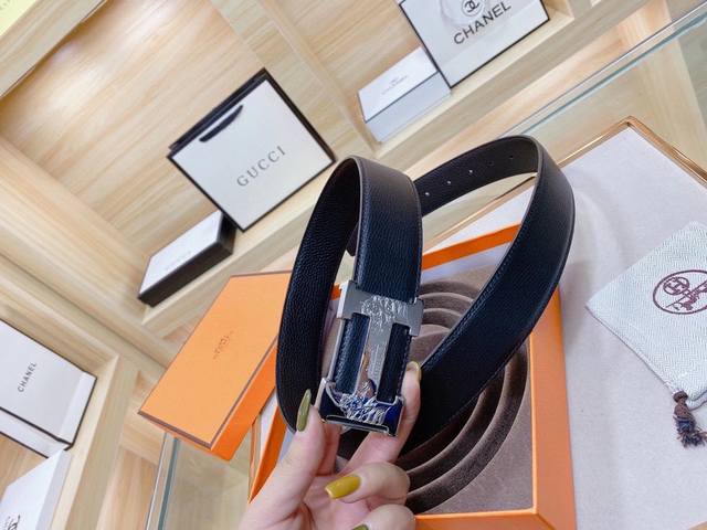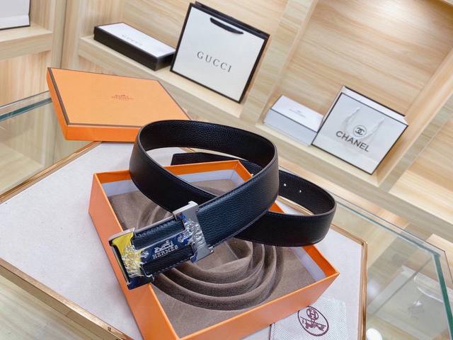 / p 200爱马仕宽度3.8Cm 精美扣头 不褪色 双面可用 头层牛皮底 手感极佳 上身郊果棒 商务休闲两用