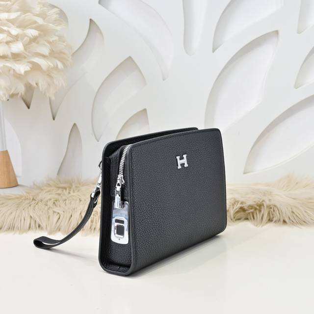 hermes-爱马仕最新款男士手包采用顶级小牛皮 高贵五金拉链头 皮质柔软 手感超赞 做工精细 休闲实用 版型非常舒适 高品质尺寸:26.16.4Cm