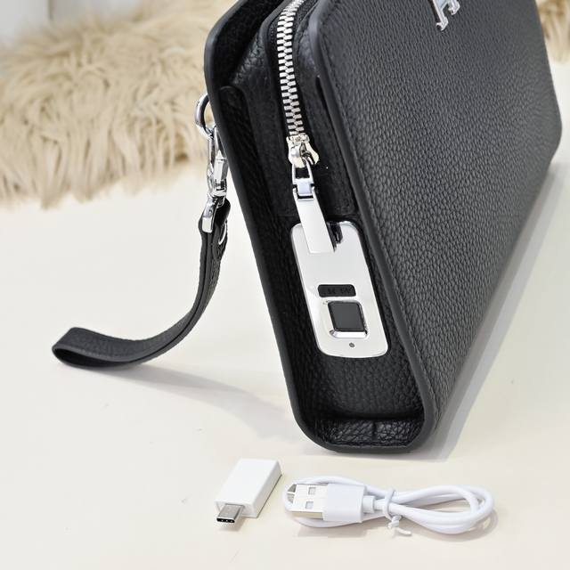 h家 最新款男士密码锁手包采用顶级小牛皮 高贵五金拉链头 皮质柔软 手感超赞 做工精细 休闲实用 版型非常舒适 高品质 配盒子...