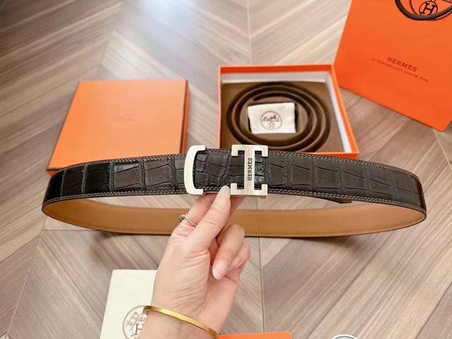 Heres.爱马仕原单专柜新款扣头搭配双面进口皮腰带龙纹最新皮纹提升了皮带本身的档次带头精钢打磨 不褪色宽度3.8工艺精湛结合原单支持验货! 附带原版包装
