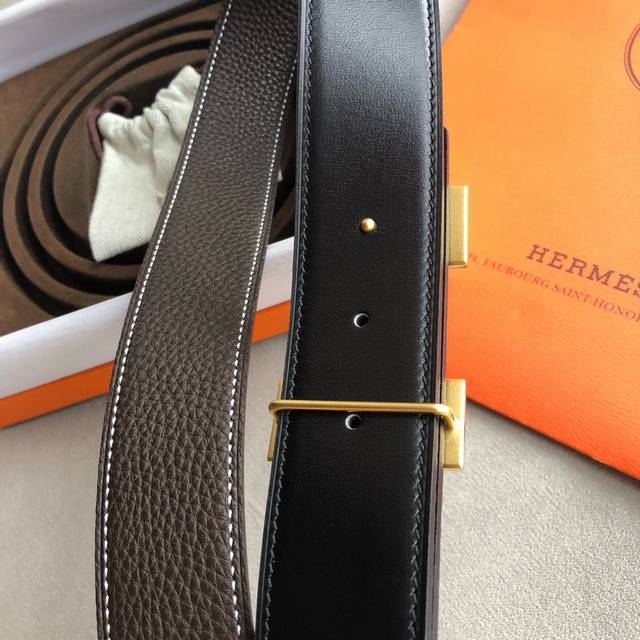 Hermes男款3.8Cm经典精钢H焊点金属扣搭配原版皮粒面,永久的选择!