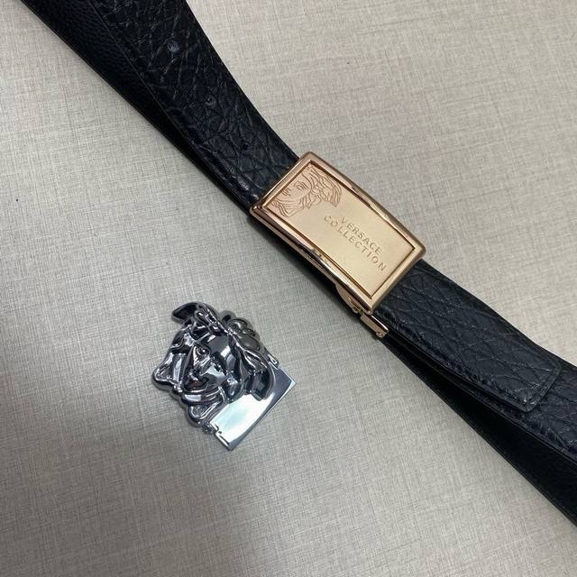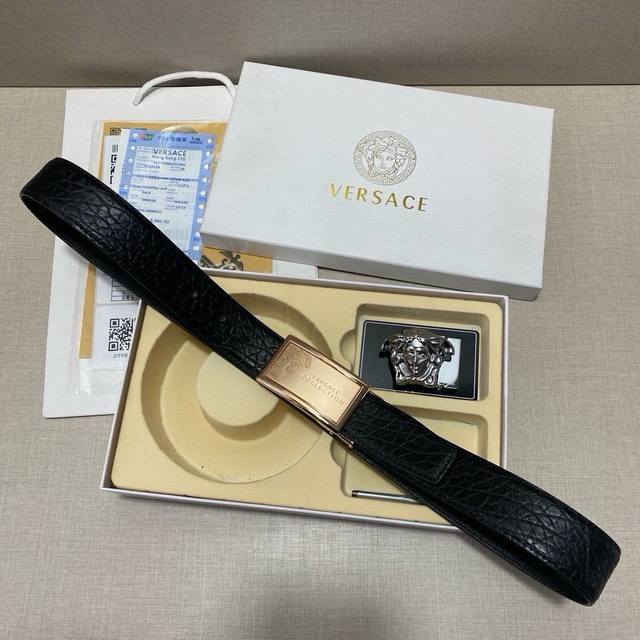 Versace精品款 ☆双扣礼盒套装 含礼盒 专柜有售 范思哲专柜在售正品 此款采用头层牛皮制作 走线油边细致 正品开模 搭配广州原版扣经久耐用、3.5Cm规格