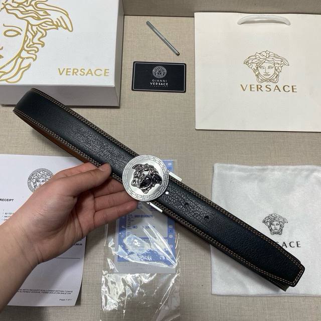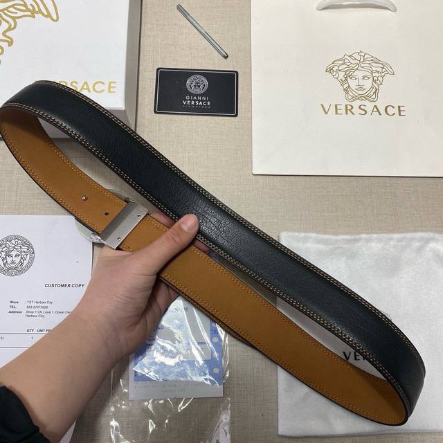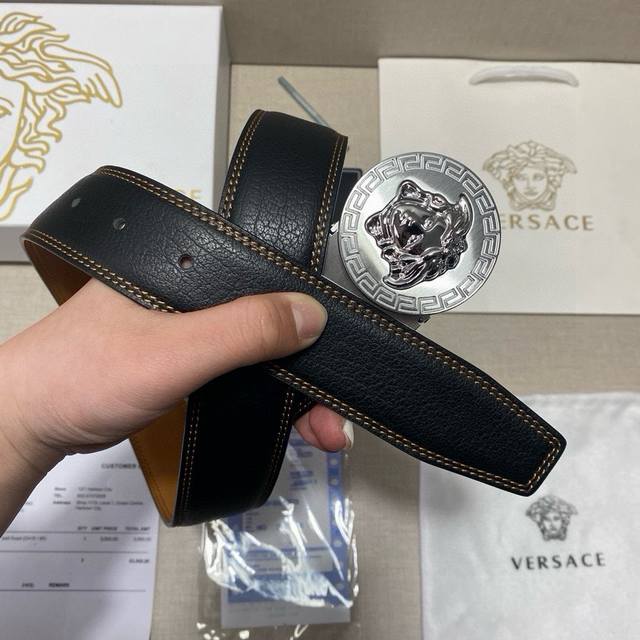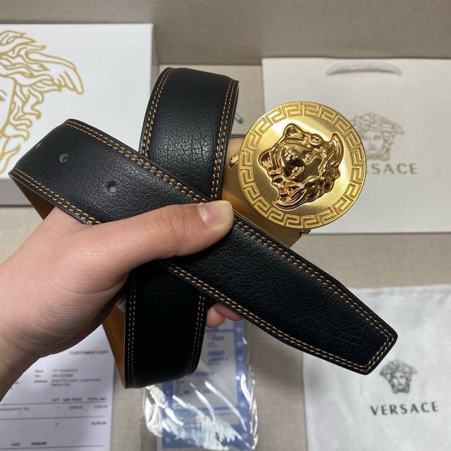 versace精品款 双扣礼盒套装 含礼盒 专柜有售 范思哲专柜在售正品 此款采用头层牛皮制作 走线油边细致 正品开模...
