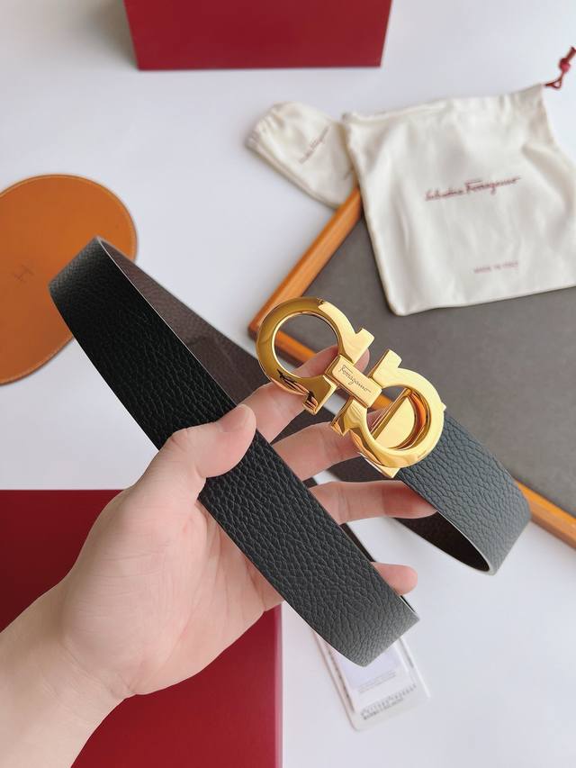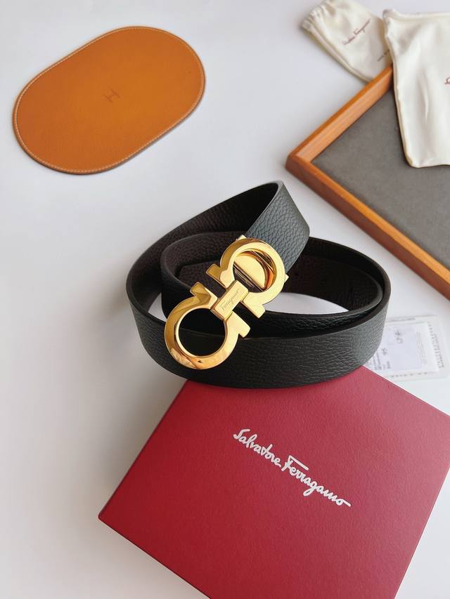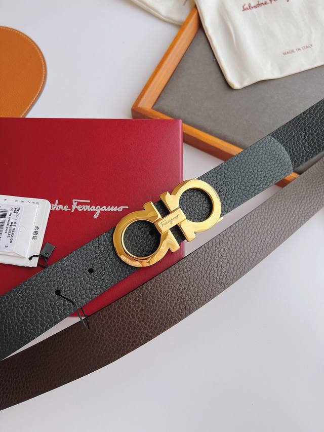 Ferragamo.菲拉格慕 全套包装 宽度3.5Cm 高级定制款男士皮带 双面进口牛皮 可双面使用 自行选择搭配 真材实料 很有质感 时尚经典不失风范 搭配精