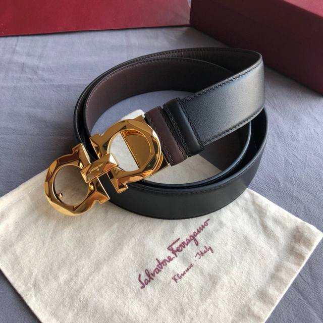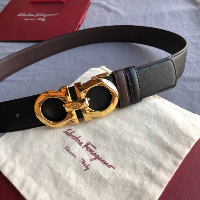 / Salvatore Ferragamo菲拉格慕男士3.5Cm新款菱形切面金属夹扣,进口头层牛皮可双面外用!