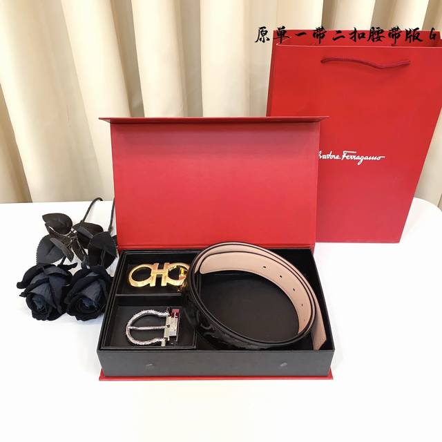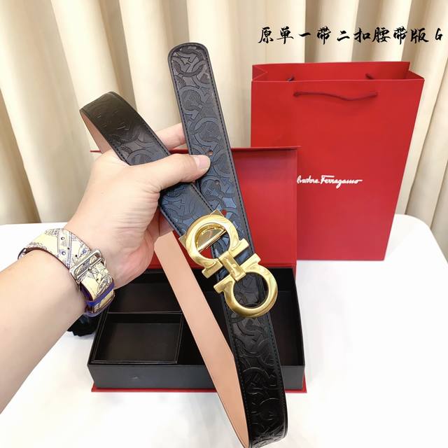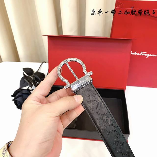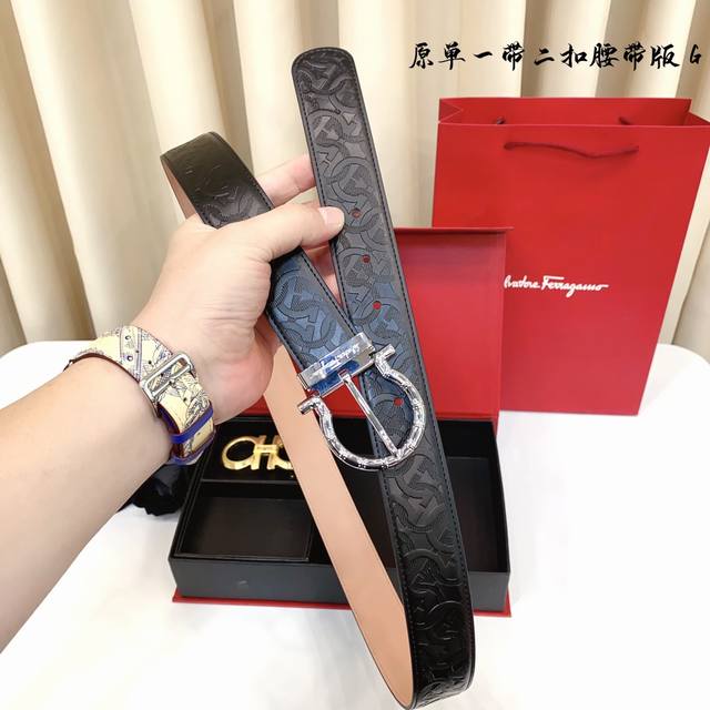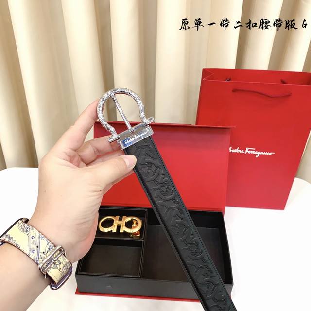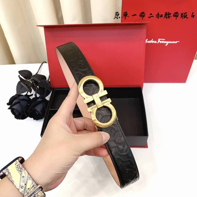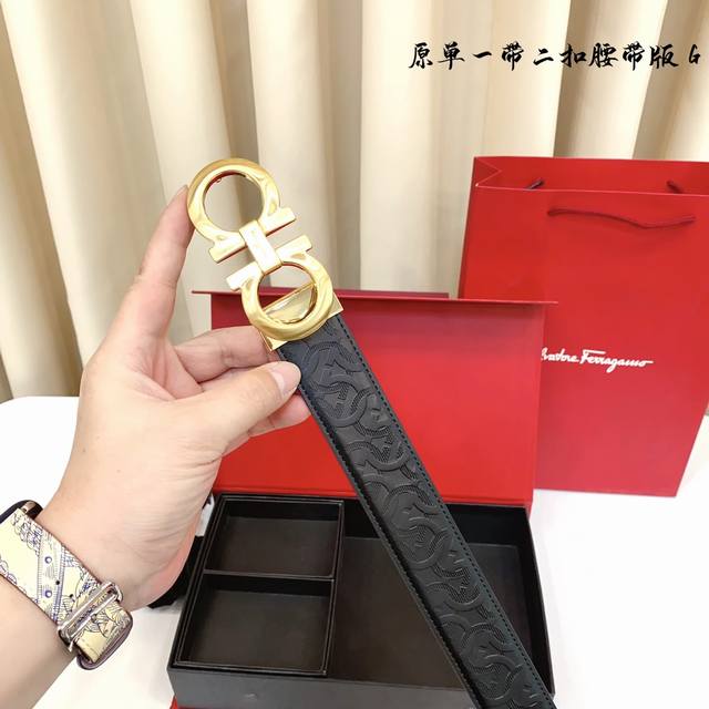 菲拉格慕 原单双面进口小牛皮带身.黑与咖啡双色一体,正反两面可用,搭配原单精品钢扣。原产皮料定制,专柜宽度3.5Cm....
