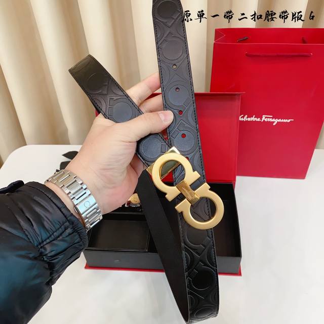 Ferragamo.菲拉格慕 全套包装 宽度3.5Cm 高级定制款男士皮带 双面进口牛皮 可双面使用 自行选择搭配 真材实料 很有质感...