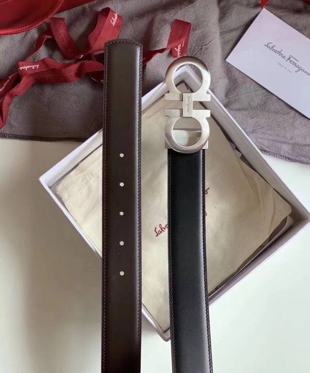 Ferragamo菲拉格慕将摩登设计与精湛的手工技艺 实用性和款式并重;双面可用,一面黑色一面咖啡色 35Mm手感柔软舒中,搭配最新原版真空电镀五金扣
