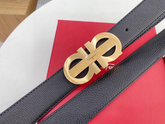 菲拉格慕 Salvatore Ferragamo 意大利 宽度3.5Cm 精美扣头 不褪色 小牛皮 手感极佳 上身郊果棒 商务休闲两用