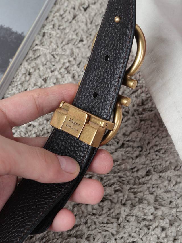 菲拉格慕 原单双面进口小牛皮带身.,搭配原单经典铜扣,原产热压纹理皮料定制,专柜宽度3.5Cm. 温馨提示:长度100-125Cm...
