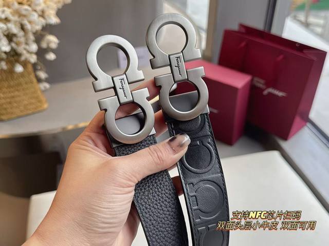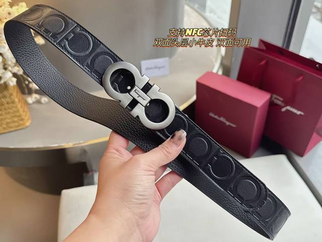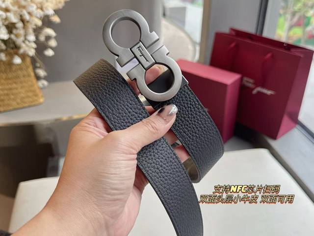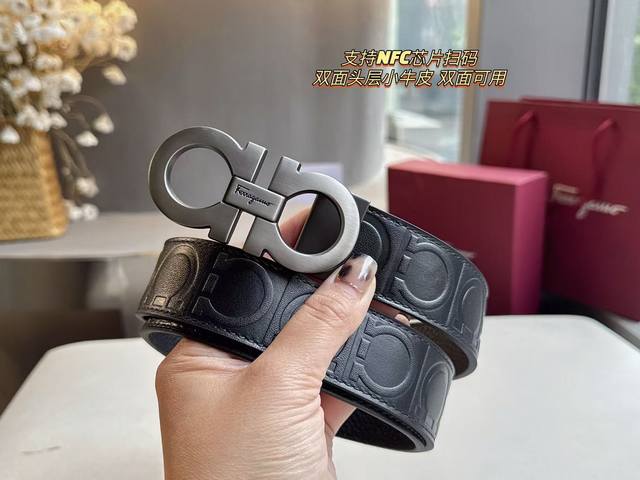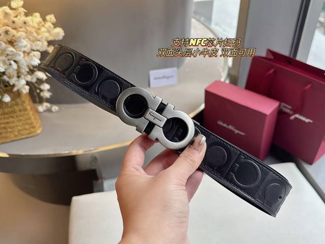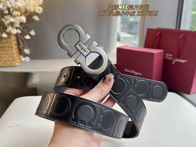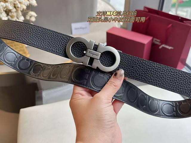 顶级原单复刻版 ,配送专柜全套礼盒包装进口原厂头层牛皮皮带 男士商务休闲腰带 Ferragamo.菲拉格慕 支持nfc扫码 宽度3.5Cm...
