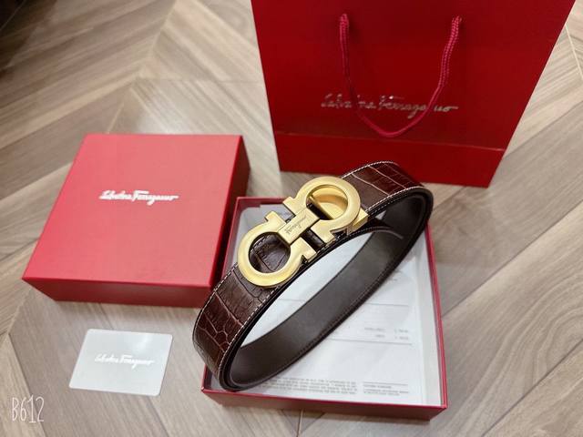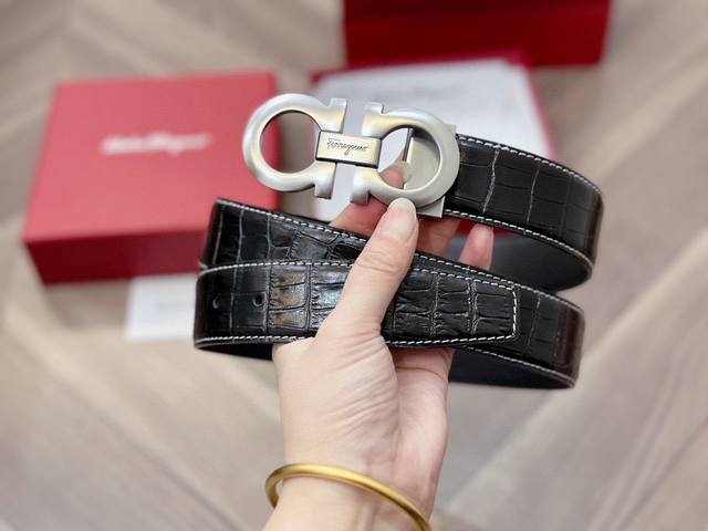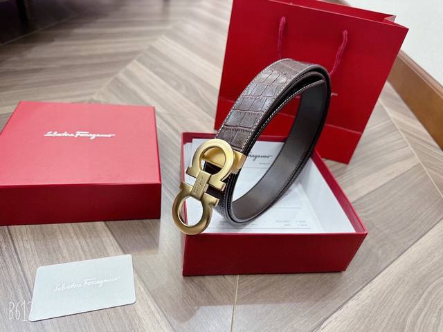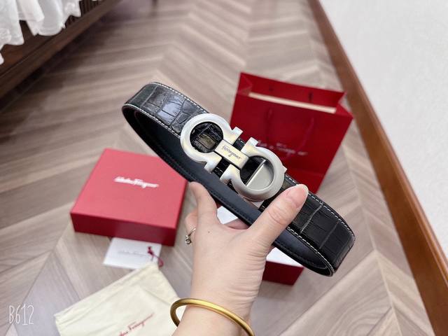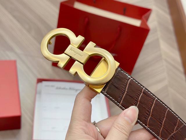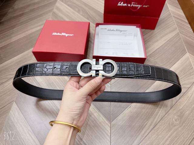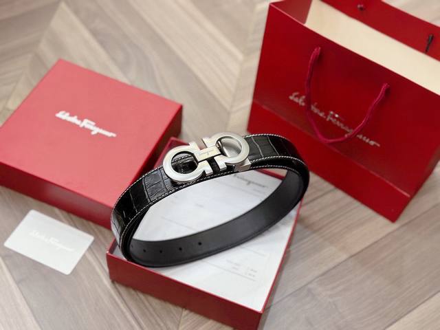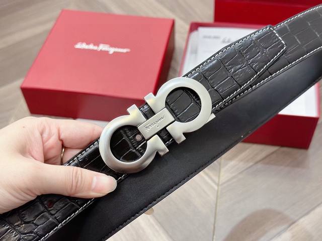Ferragamo.菲拉格慕 配图新款包装 宽度3.5Cm 高级定制款男士皮带 双面进口牛皮 可双面使用 自行选择搭配 真材实料 很有质感...