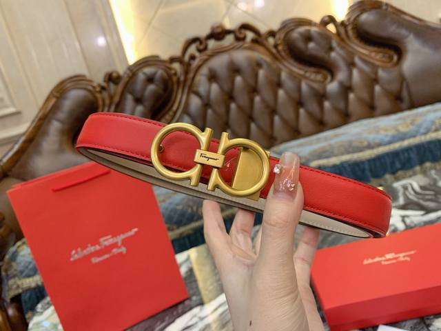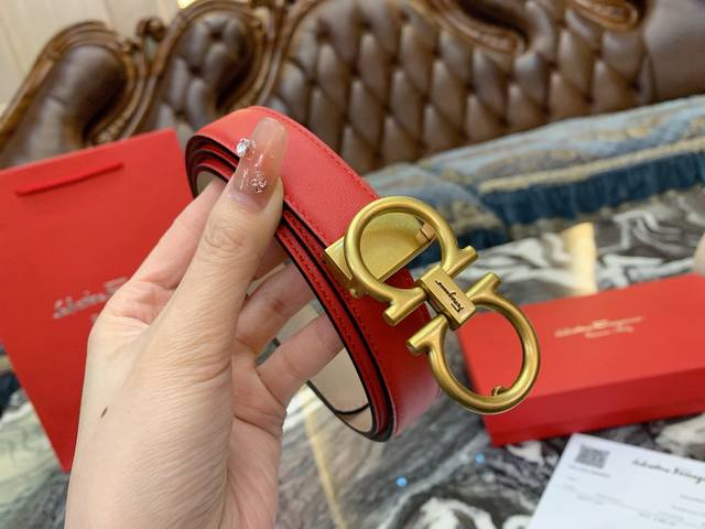 原单正品 菲拉格慕 Salvatore Ferragamo 专柜款小牛皮女士腰带,双面头层 搭配官网新款经典款8字铜扣,宽度2.5Cm,长度可自行裁剪,工艺精湛