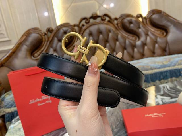 原单正品 菲拉格慕 Salvatore Ferragamo 专柜款小牛皮女士腰带,双面头层 搭配官网新款经典款8字铜扣,宽度2.5Cm,长度可自行裁剪,工艺精湛、手感柔软、细腻,经典之作.