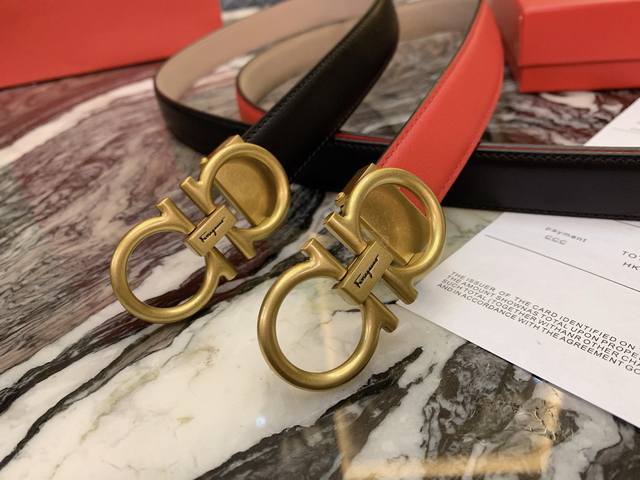 / 原单正品 菲拉格慕 Salvatore Ferragamo 专柜款小牛皮女士腰带,双面头层 搭配官网新款经典款8字铜扣,宽度2.5Cm,长度可自行裁剪,工艺精湛