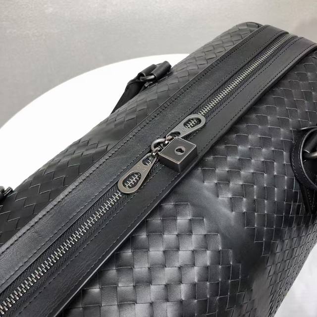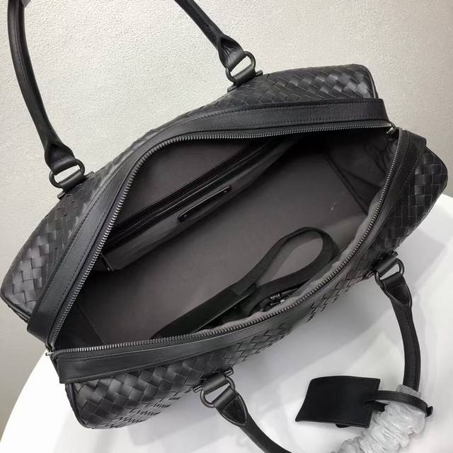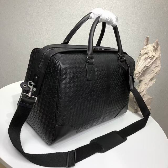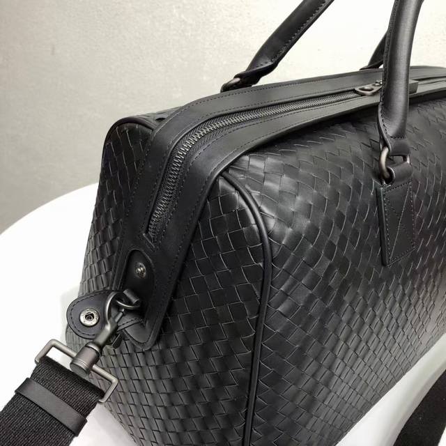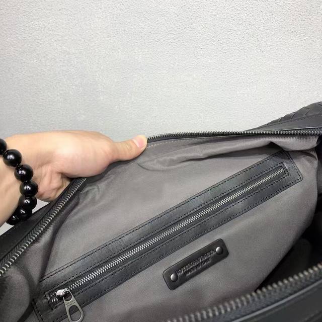 Bottegaveneta葆碟家新款编织手提袋,单肩斜挎旅行包,全编织的Bv一直是最经典的,整个包几乎找不到一个Logo,一直是最低调奢华的奢侈品牌,全包采用进口定制小牛皮制成,革新的柔软编织面料,简约而不简单的设计。它的皮质柔软细腻,超有质感,也不容易刮花,随便用也不心疼。加固的皮革手提带软软的,拎起来特别舒服,搭配装卸式肩带,长短随意调节,可手提和斜挎。双向拉链头,拉链可以拉到最底部,加宽了内部空间。内里也是柔软的小牛皮材质,质感满满的,只有一个拉链内袋,容量超级无敌大。底部有六个优质金属底座,防尘防