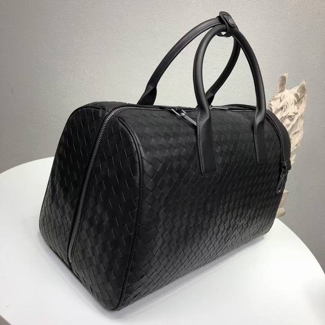 Bottegaveneta葆碟家新款编织手提袋,单肩斜挎旅行包,全编织的Bv一直是最经典的,整个包几乎找不到一个Logo,一直是最低调奢华的奢侈品牌,全包采用进口定制小牛皮制成,革新的柔软编织面料,简约而不简单的设计。它的皮质柔软细腻,超有质感,也不容易刮花,随便用也不心疼。加固的皮革手提带软软的,拎起来特别舒服,搭配装卸式肩带,长短随意调节,可手提和斜挎。双向拉链头,拉链可以拉到最底部,加宽了内部空间。内里也是柔软的小牛皮材质,质感满满的,只有一个拉链内袋,容量超级无敌大。底部有六个优质金属底座,防尘防