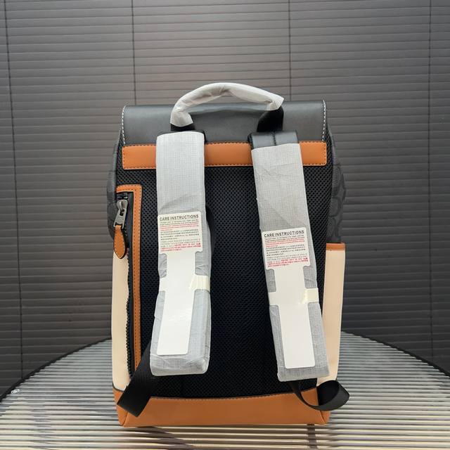 高端货 新款 “Coach蔻驰”双肩包 Coach蔻驰 Rivington 40 大容量老花拼色翻盖休闲 皮革 书包背包双肩包 大号 男款...