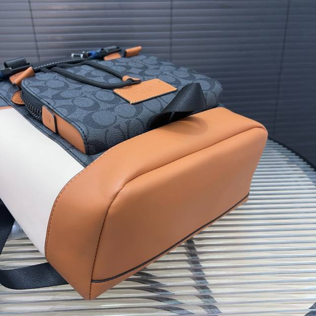 高端货 新款 “ Coach ”蔻驰双肩包 Coach蔻驰双肩包 Coach蔻驰 League 29 经典logo标志 人造革拼牛皮革拼织物 双肩包 大号 男款