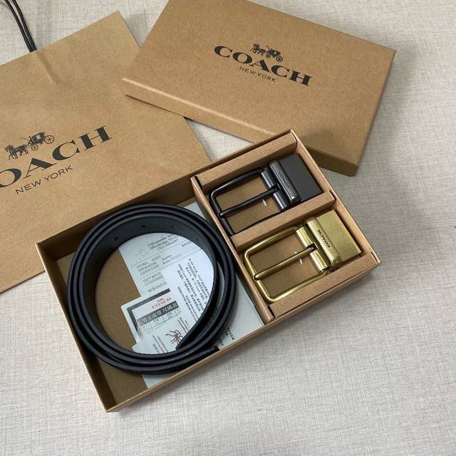 原单货---[飞吻]Coach 蔻驰皮带 双面男士腰带礼盒装皮带,精致原版扣,双面可用 宽度3.8Cm。私密渠道!专柜原单。
