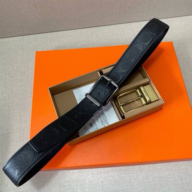 双扣皮带:头层皮质带身搭配3.5Cm仿铜扣头