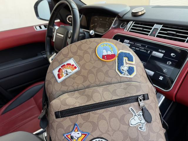 高端货 新款 “ Coach ”蔻驰双肩包 Coach蔻驰升级版双肩包 X Peanuts Snoopy史努比 联名款 West32 图案贴饰老花 帆布拼皮革