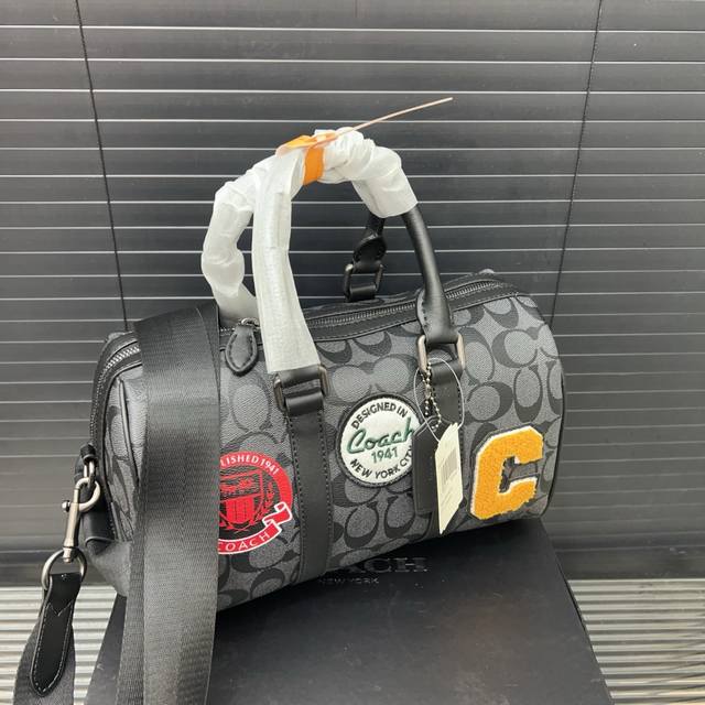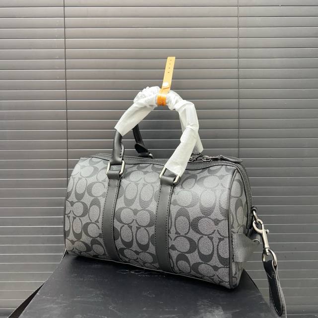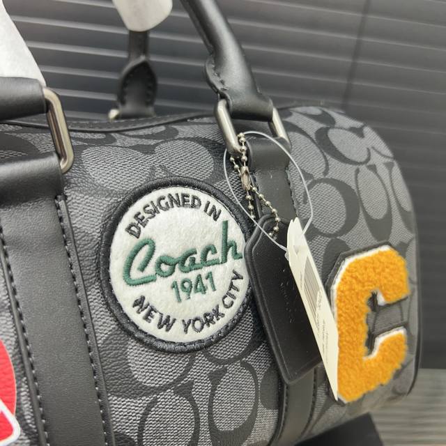 / Coach 蔻驰 Venturer Duffle 27 经典老花拉链开合 标志性涂层帆布拼光滑小牛皮 旅行包 波士顿圆桶包 单肩斜挎包 经典Logo搭配原厂工艺
